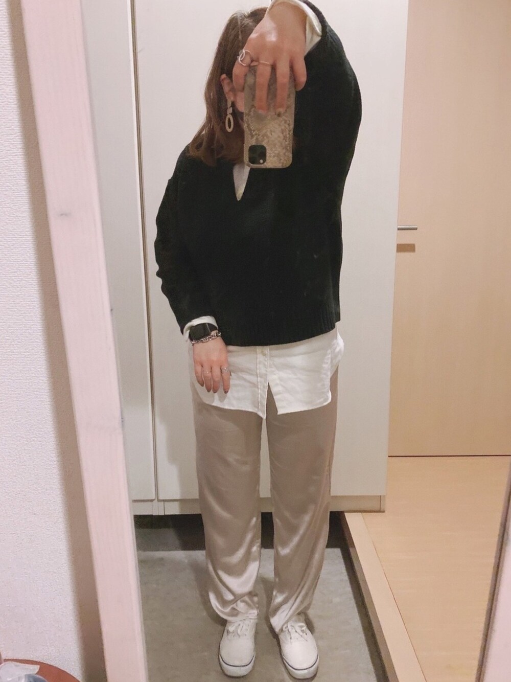 今日の出勤コーデ 旦那にと選んで買ったのに 着てくれないUNIQLOのスタンドカラーシャツ 私が着るならこう着る☺︎