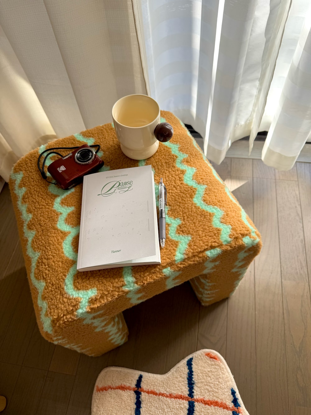 ふかふかの1人がけチェア🪑 座るのはもちろん、こんな感じでものを置いてテーブル代わりに使うのもオススメ! 足置きにするのも🦶🏼◎ ブラウンはEC限定カラー🤎