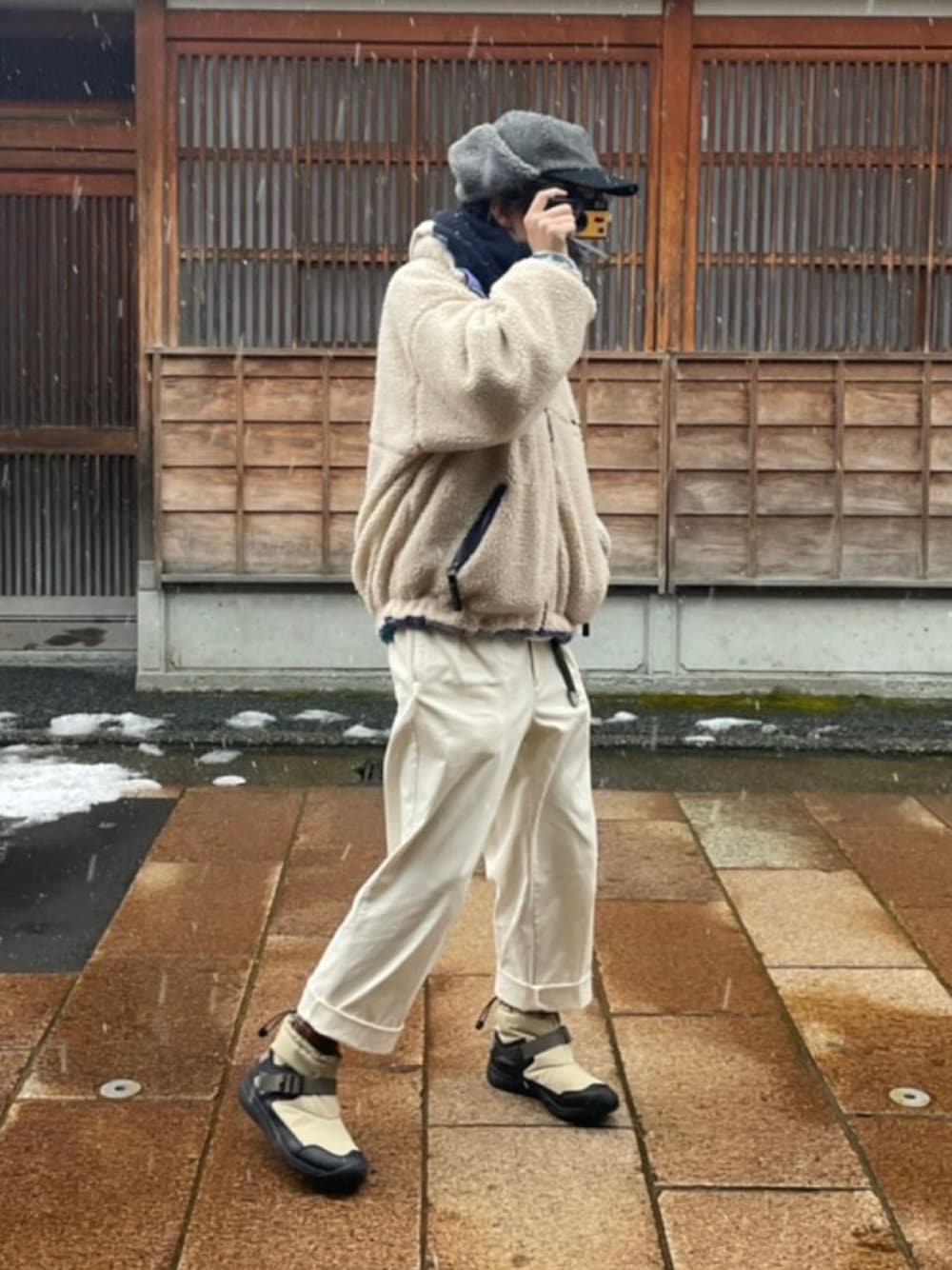 金沢に行きました☃️ 雪景色が見れるとのことで、 全体的に白をベースにコーディネート☃️ 雪雨対策で買ったkeenのレインブーツが大活躍👏 めちゃ暖かくて快適でした🥾 雪対策のブーツ買うと、冬の季節でも遠くに出かけたくなりますね。