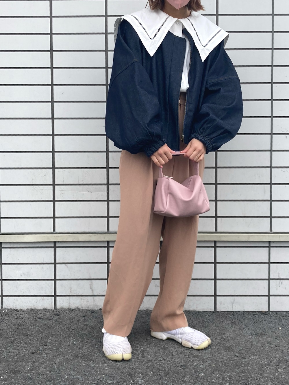 ビックカラー ノーカラーの デニムジャケット合わせ。 すごく可愛かった♡