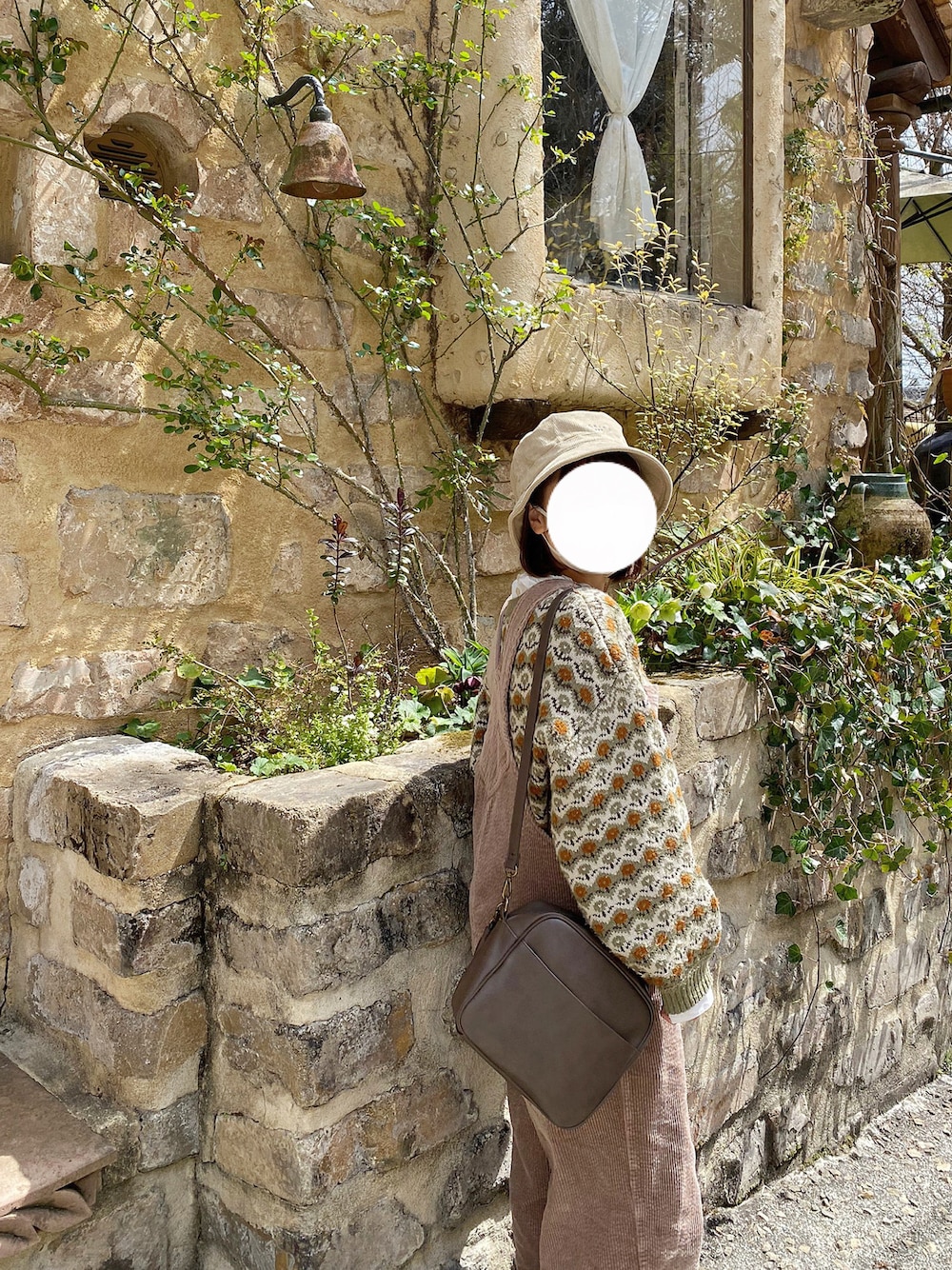 . お気に入りでイロチ持ちしてるお花柄ニットとコーデュロイのサロペットを合わせて"ほぼ木"コーデした𖡼.𖤣𖥧