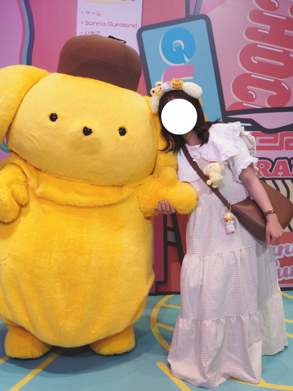 プリンくんコーデ🍮 黄色のギンガムチェックワンピかわいい〜!