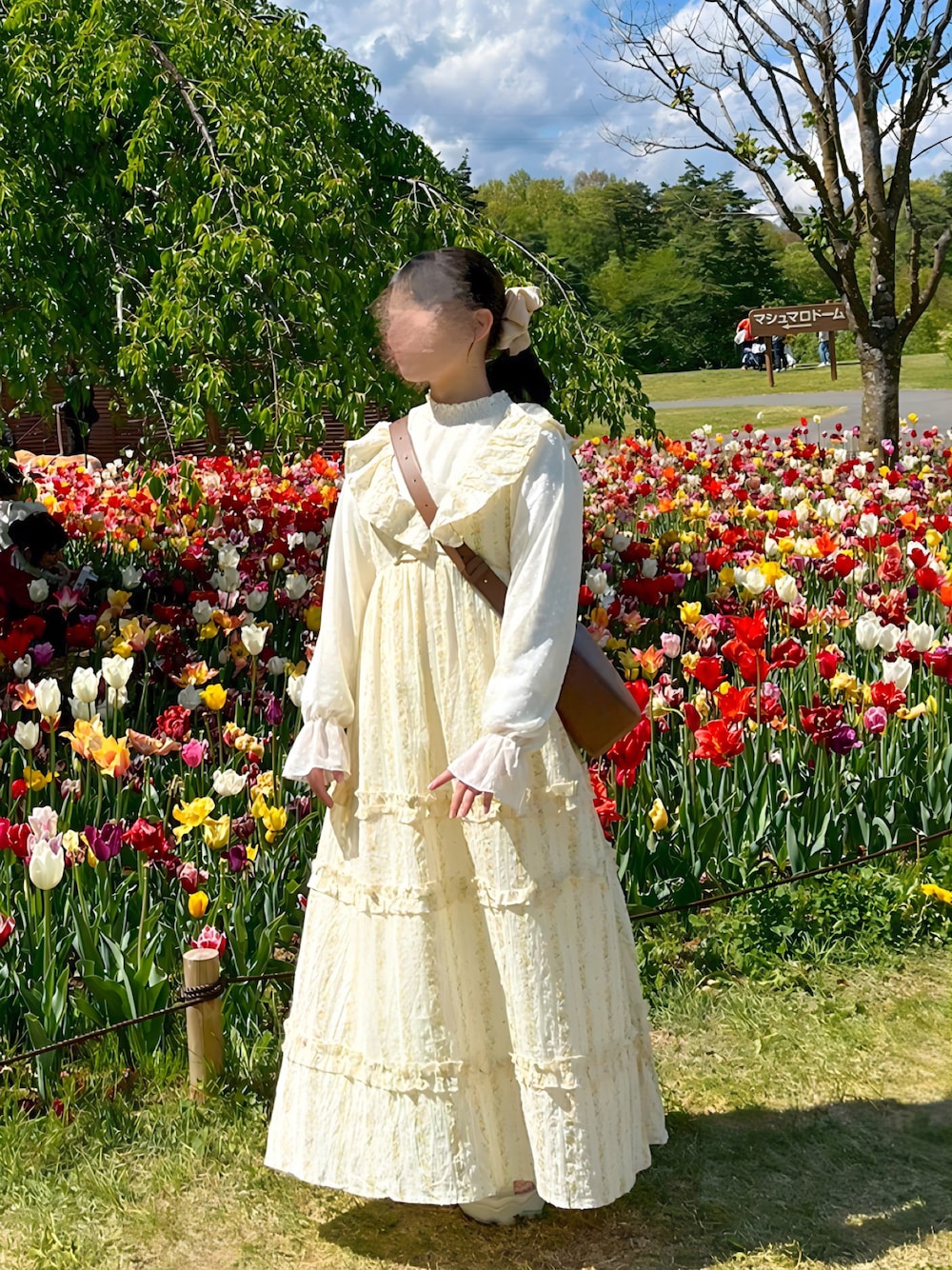 このワンピースでチューリップ畑に行きたかった…!念願!🌷 昔買ったセットアップについてたブラウスがぴったりだった◎