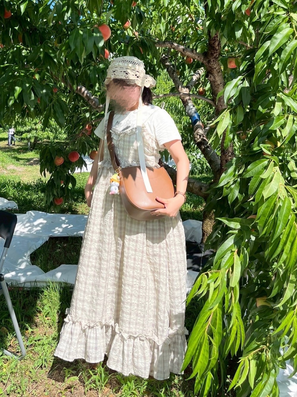 🍮のワンピース「チェックリボンキャミワンピース」を使ったコーディネート
