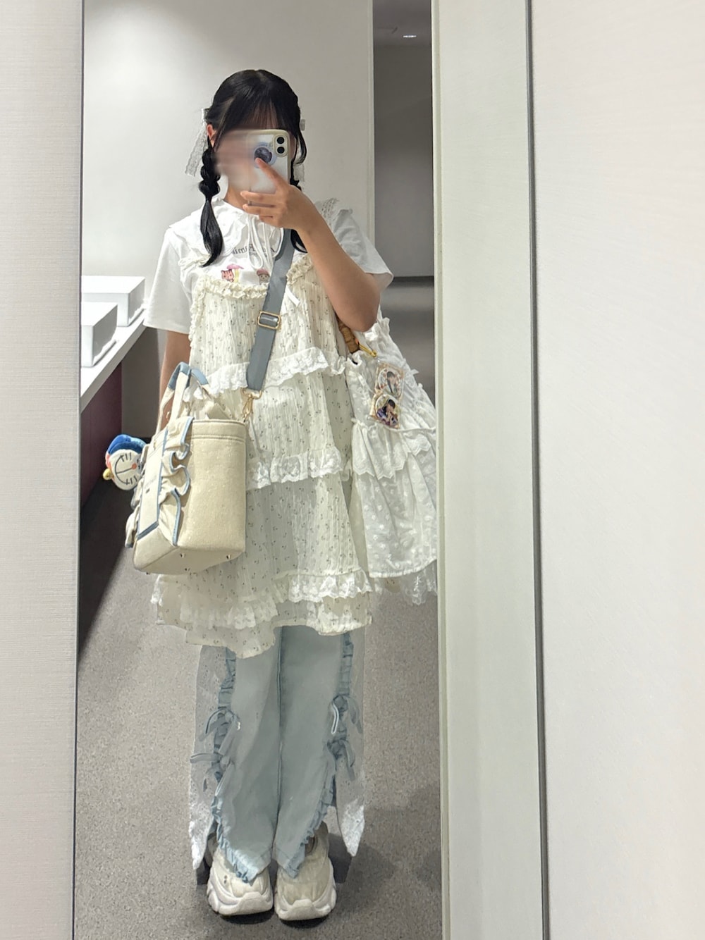 前は襟に合わせたから今度はTシャツ合わせたい🎶と思って合わせたけど、結局つけ襟を付けてた☁️ このデニム本当にだいすき〜
