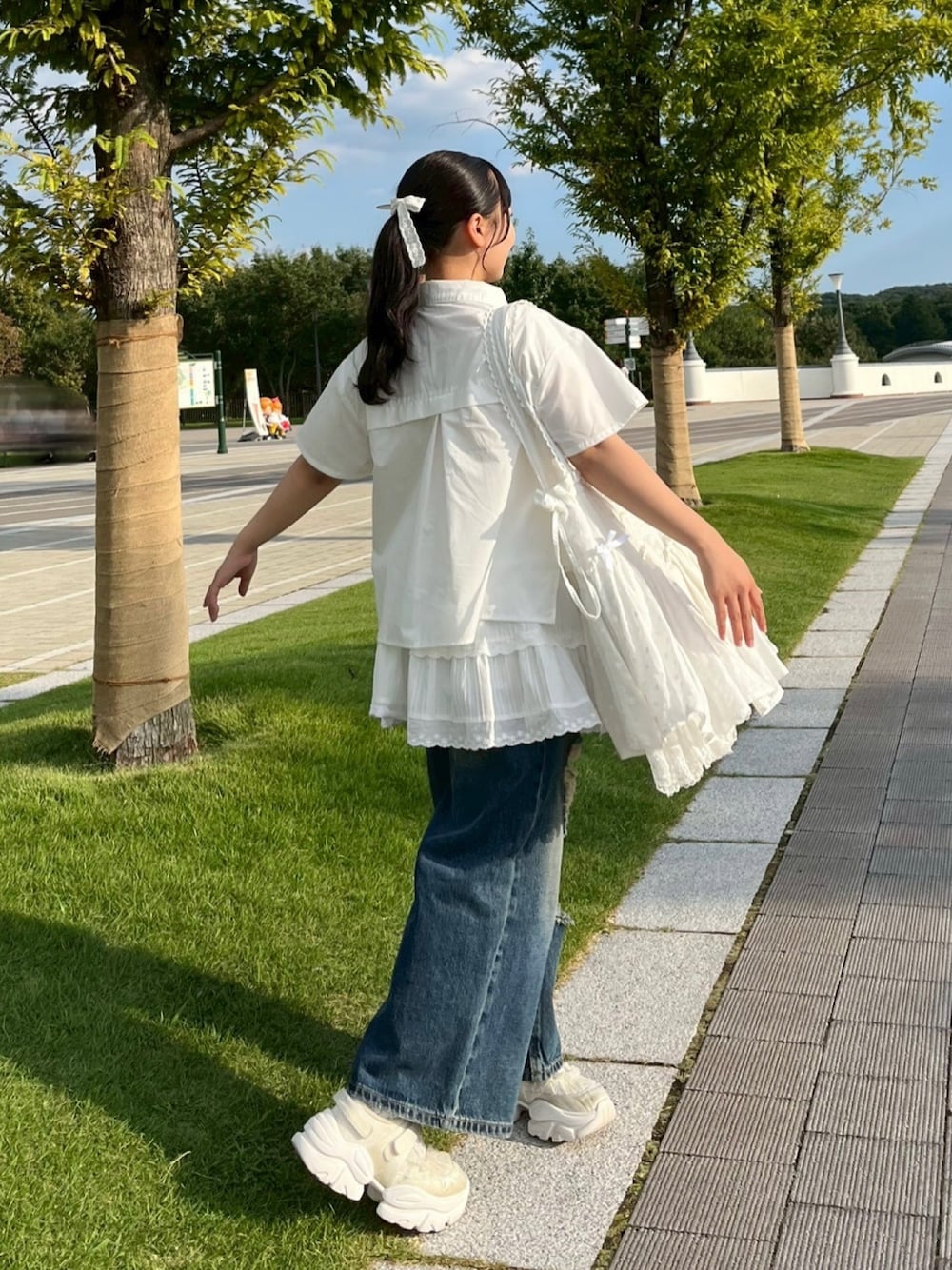 🍮のシャツ/ブラウス「【ZOZOTOWN限定】asymmetry frill short sleeve shirt/半袖フリルシャツ」を使ったコーディネート