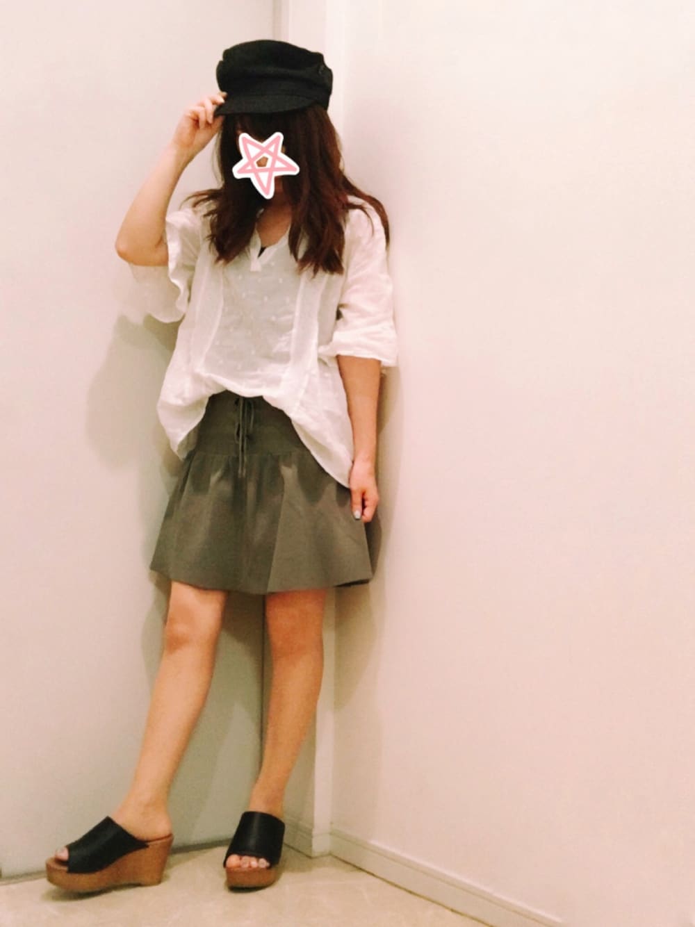 ウエスト部分がコルセットになってるニットスカートにトップスはふんわりしたシャツを合わせました。