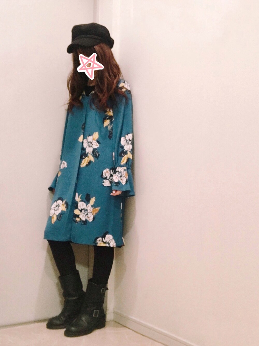 キレイめなワンピをキャスケットとエンジニアブーツでカジュアルダウンしました。
