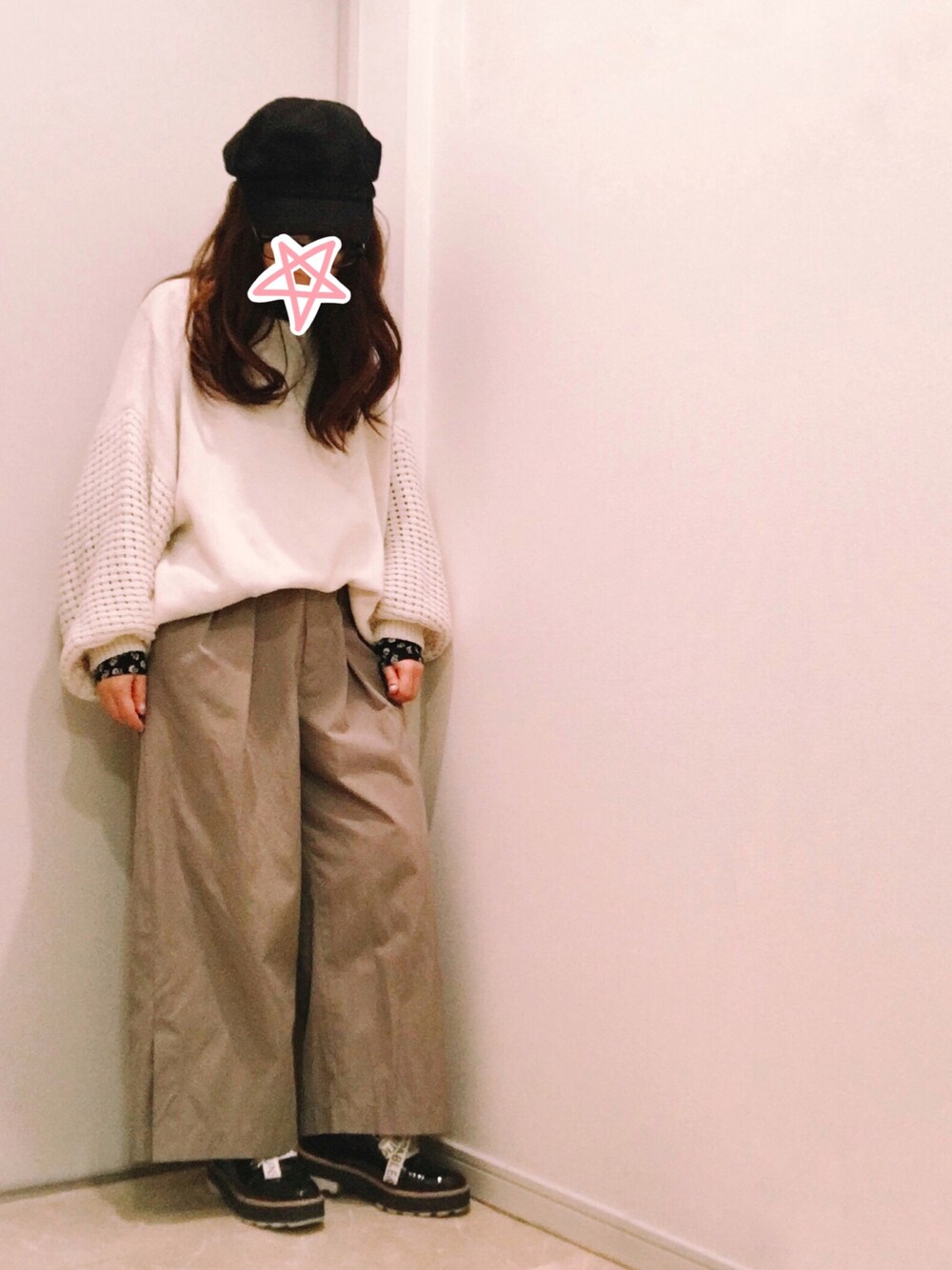 インナーのブラウスとシューズの黒がまとめてくれていい感じです。