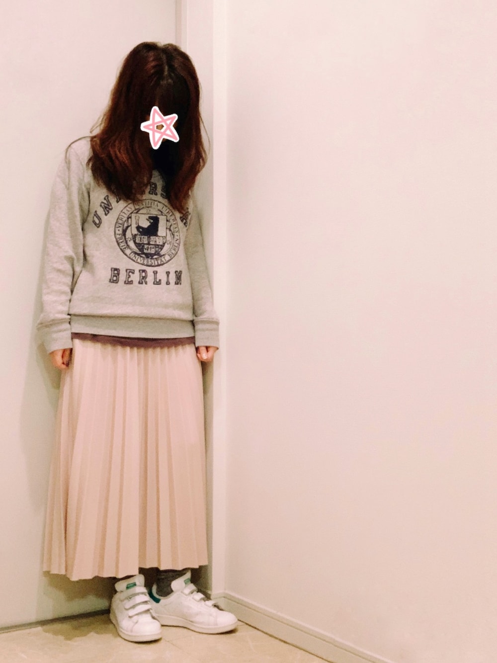 きれいめプリーツスカートをカジュアルに着ました。
