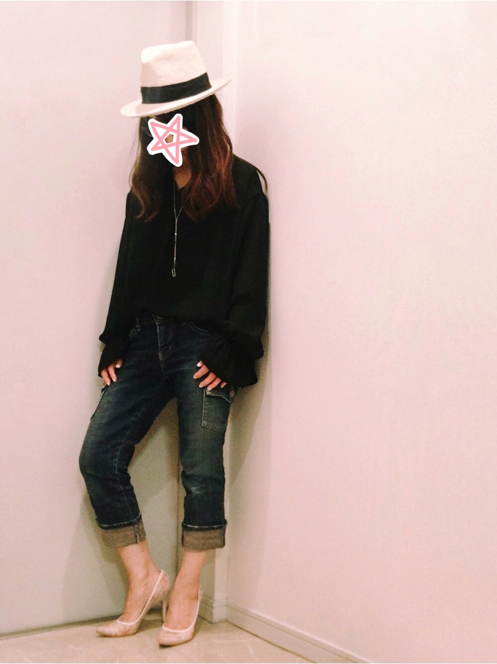 ne-neのシャツ/ブラウス「シフォンジョーゼットBACKフリルブラウス」を使ったコーディネート