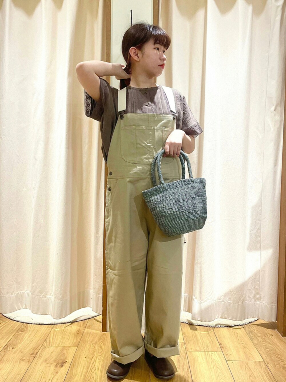 松のサロペット/オーバーオール「カラーツイルサロペットパンツ」を使ったコーディネート