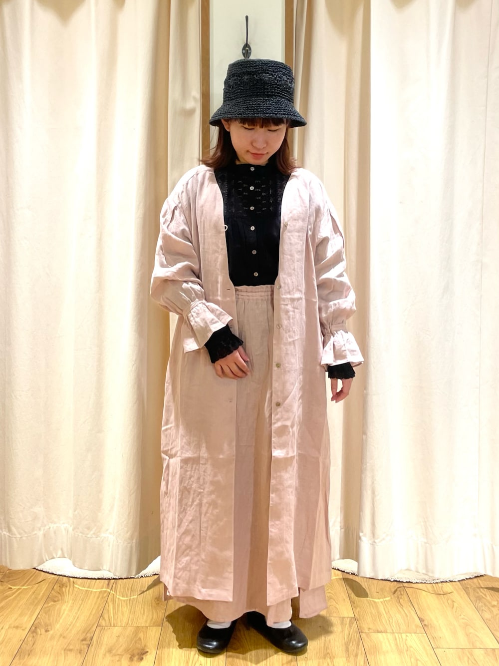 松のハット「柄編みバケットハット」を使ったコーディネート