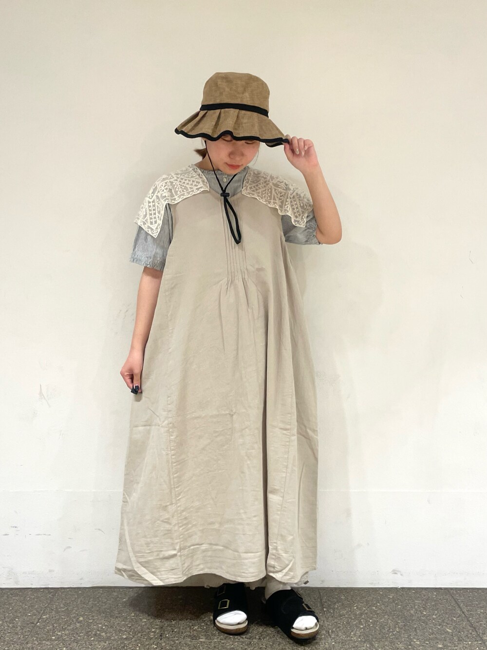 松のハット「ストラップ付プリーツハット」を使ったコーディネート