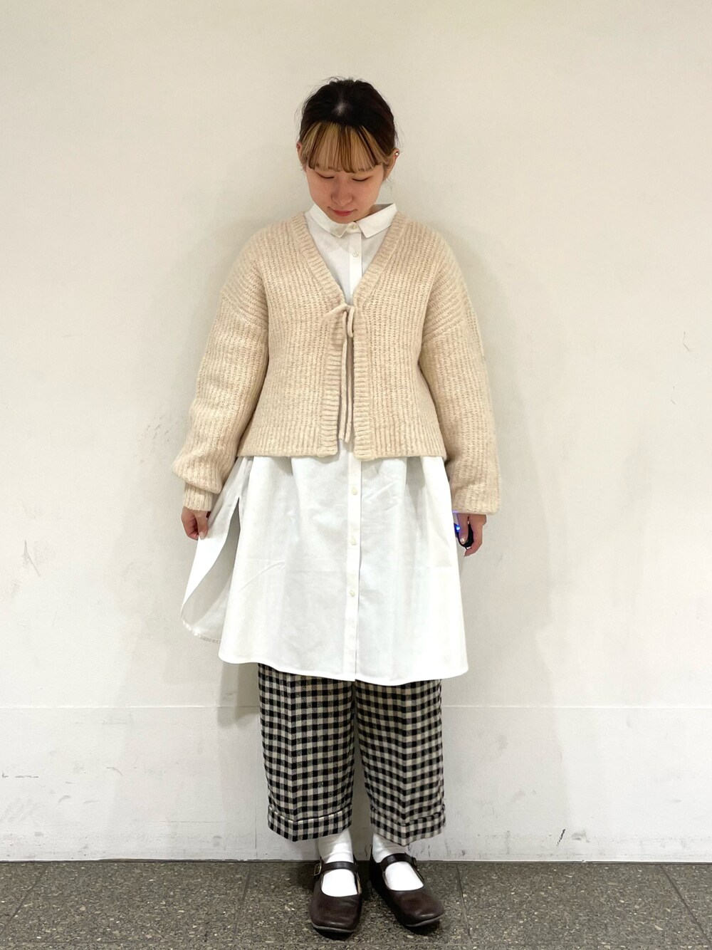 松のチュニック「【保温加工】柄アソートちび襟シャツチュニック」を使ったコーディネート