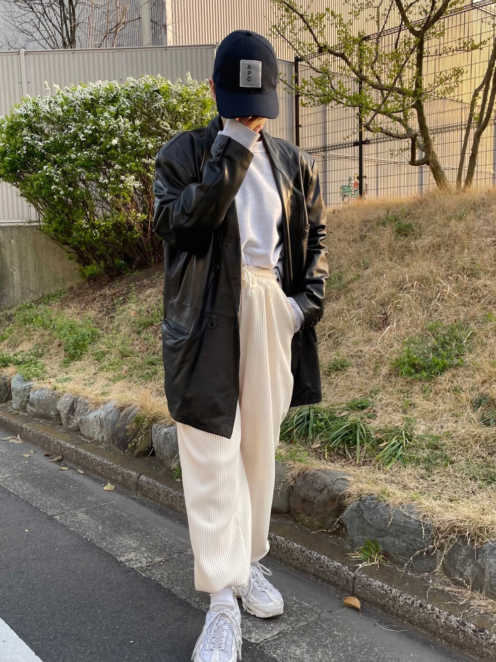 父から譲ってもらった レザージャケットが主役のコーデ! リラックスアイテムと かっちりしたジャケットの バランスが好きでよくやるコーデ🐯