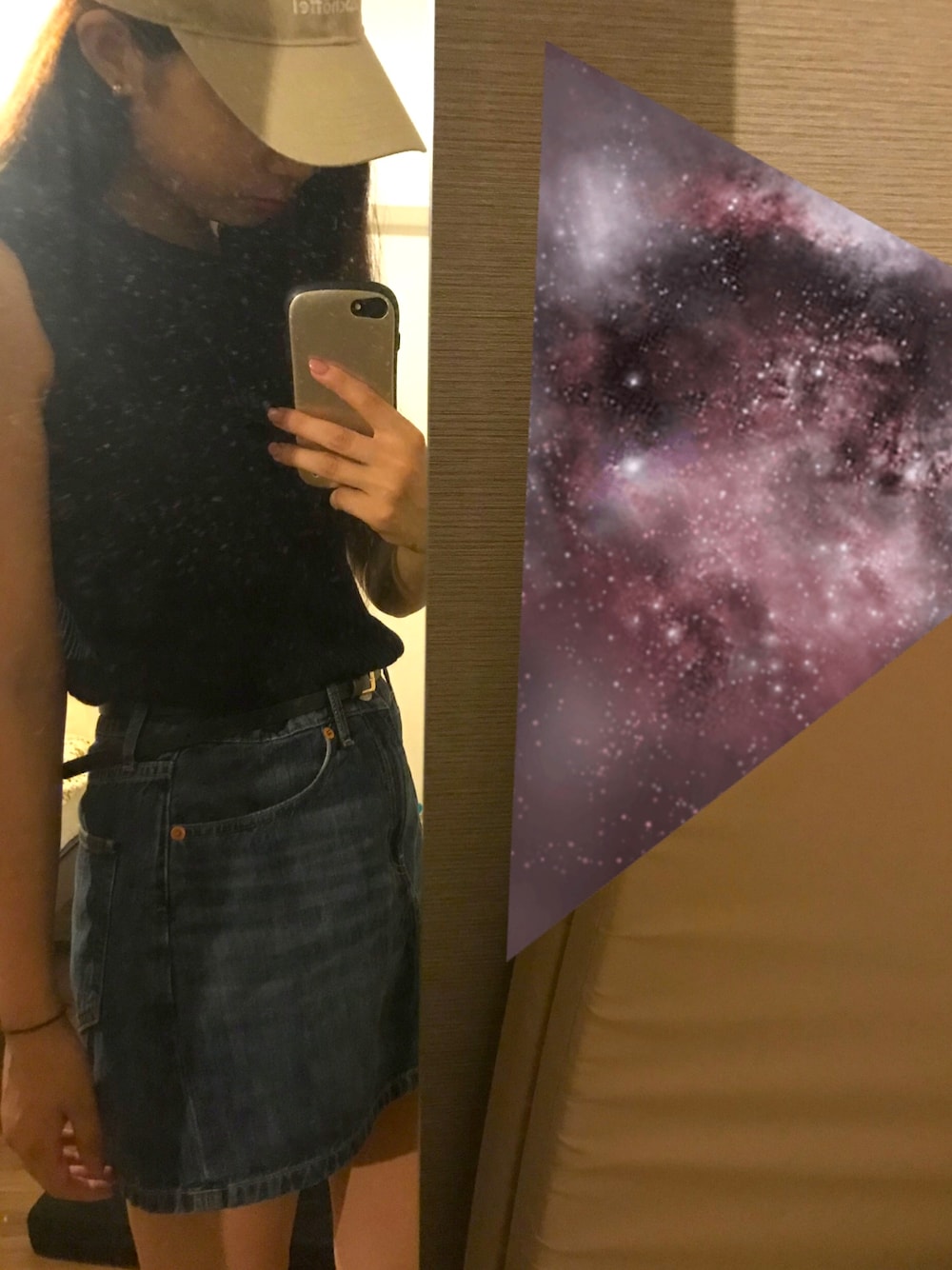 部屋で撮ったから家感があるものをスタンプで隠すの必死 久々にデニムスカートを履いた日