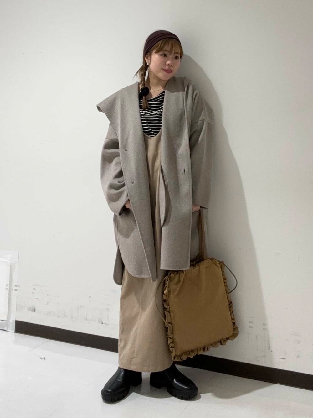 リバーフードコートです🎵 程よいカジュアルさがとてもかわいいです。 立体感のあるフードがコーデに躍動感をだします! ミドル丈も私の身長には嬉しいです! 暗すぎず、明るすぎないベージュが私はおすすめです◎