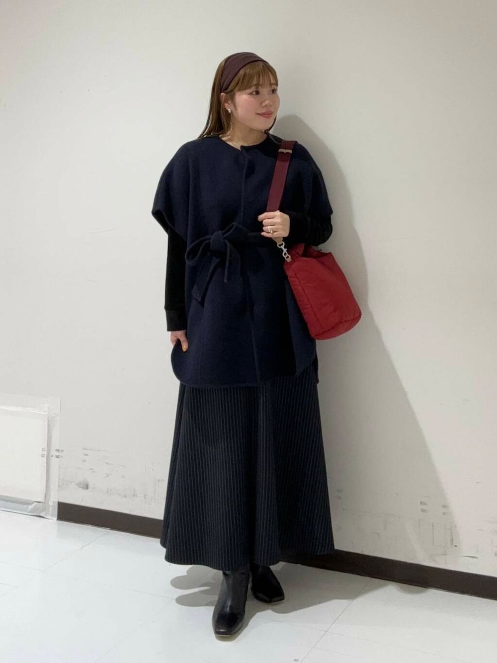ウールカシミヤリバーポンチョコートです♪ 高品質なウールカシミヤを使用した、軽くて柔らかい肌触り・上品な風合いが特徴です! ウエストマークのリボンも付いており、ワンランク上のコーディネートが楽しめます◎