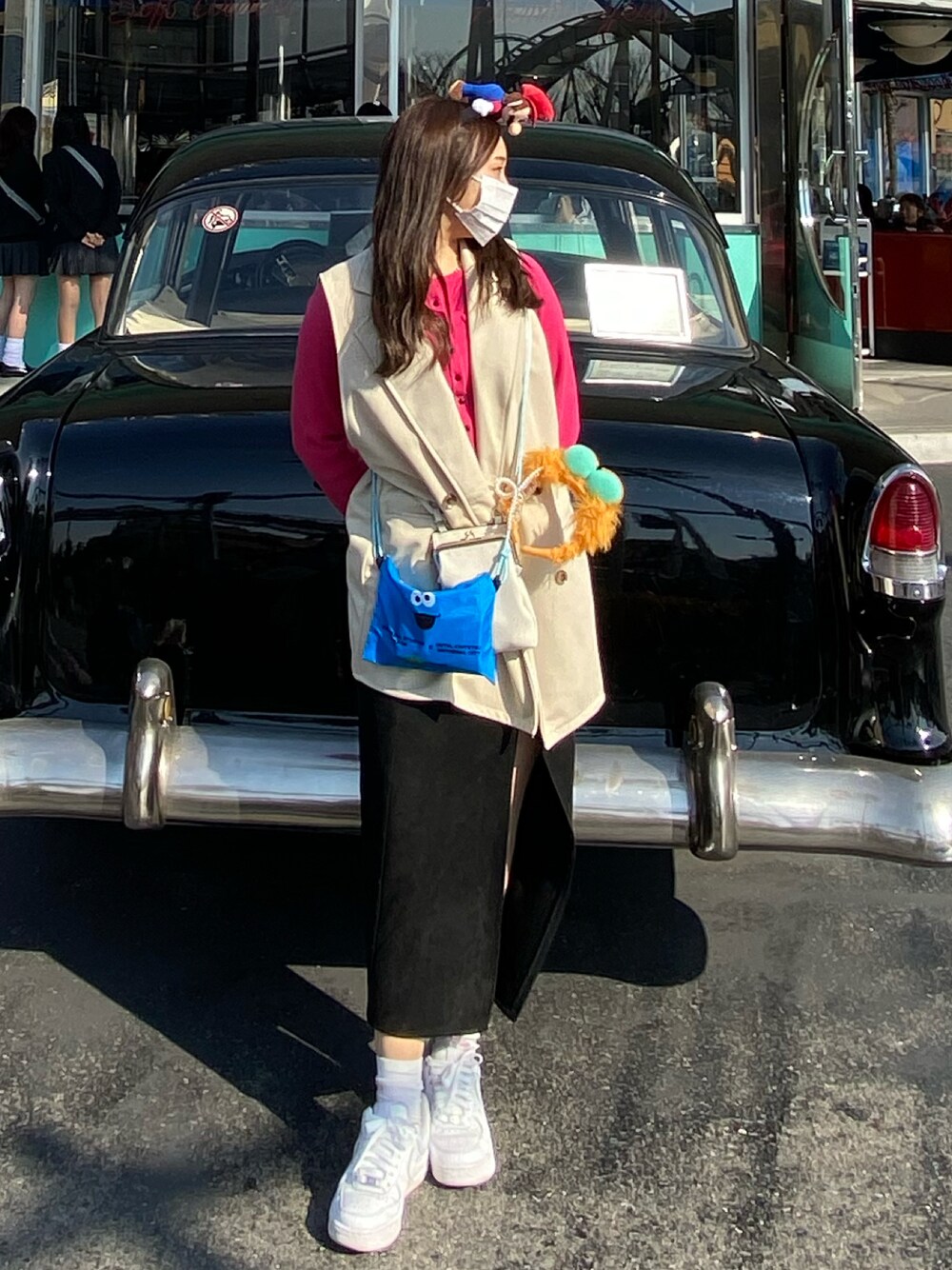 ユニバコーデ🍄 持ち物がカラフルすぎて全体的にガチャガチャしてる😅ユニバだから仕方ないよね
