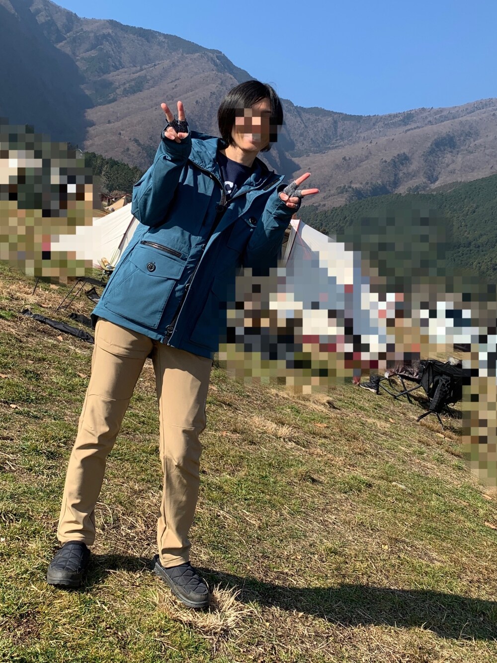 冬のキャンプコーデ。全部ワークマンです。 暖かさと、汚れても火の粉がとんでも気にならないことが重要。