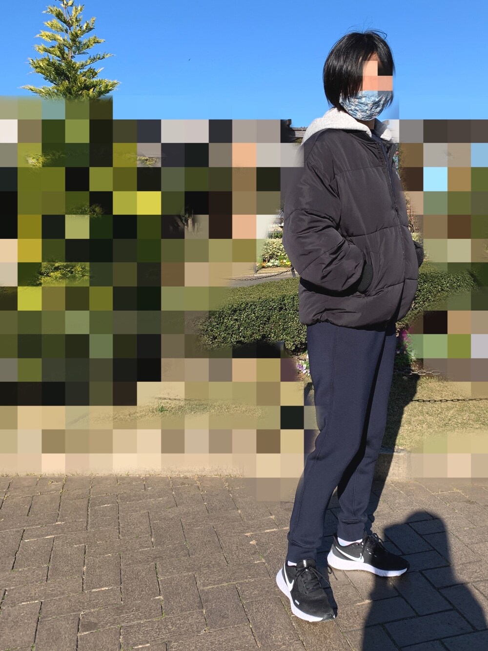 キレイめジャージといった感じで、公園やワンマイルコーデに使えます。中綿ジャケットはかなり暖かいです。