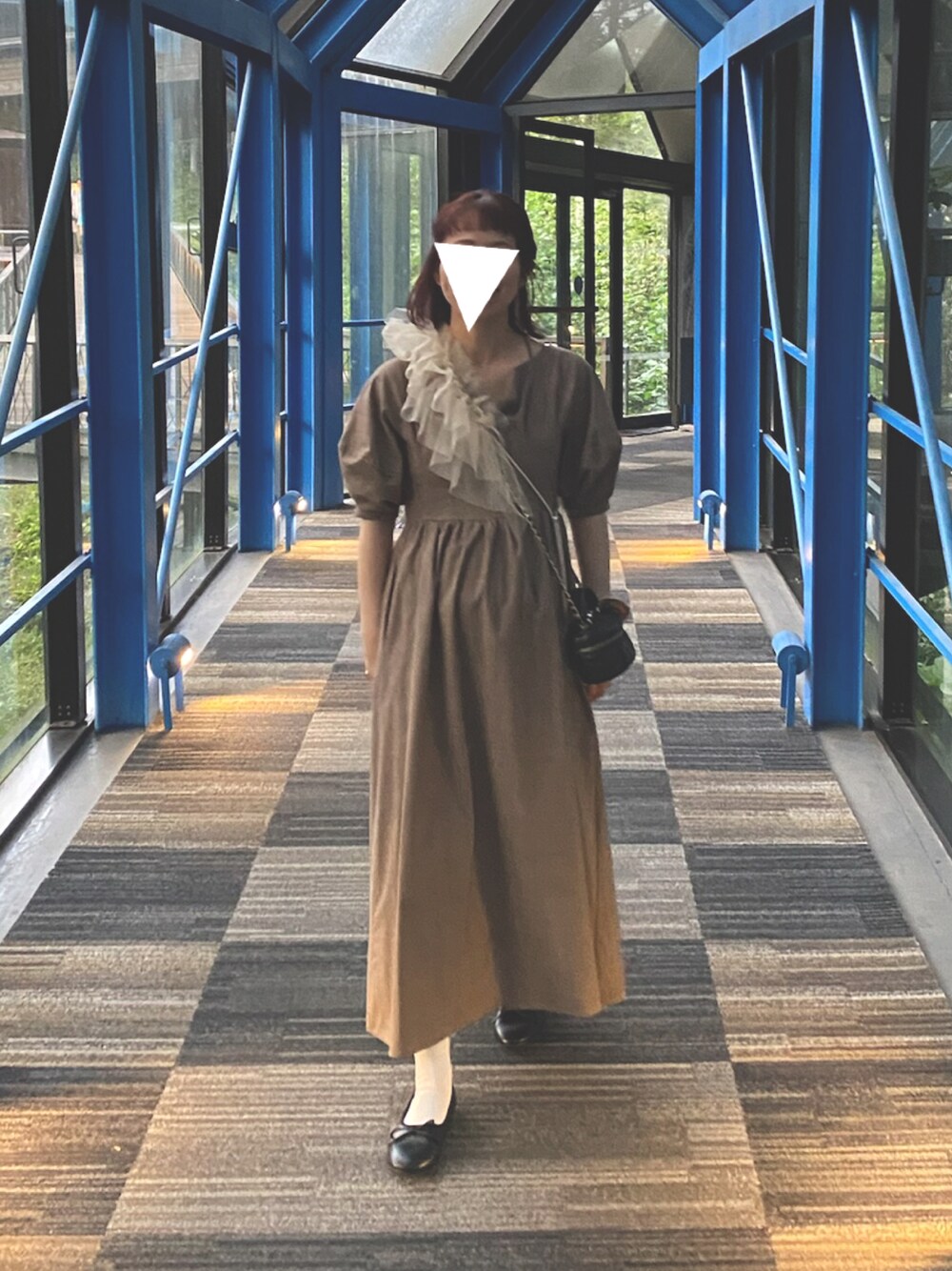 myu-◎のワンピース「立体パフスリーブバックシャーリングワンピース」を使ったコーディネート