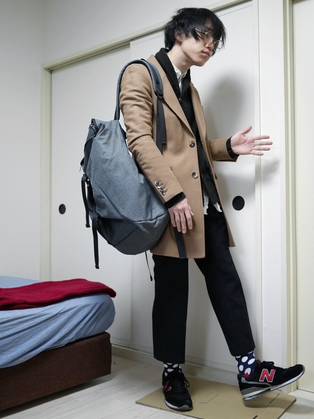 こんにちは。 無駄にデカイリュックと丸メガネを買ったので、 これで僕もトレンディなメンズになったこと間違いなしです。 話は変わりますが、とあるまとめサイトで、 7これはないと思うファッション」みたたいなまとめがあり、その中で丸メガネが登場してました ちなみに、 シャツとパンツはユニクロです。