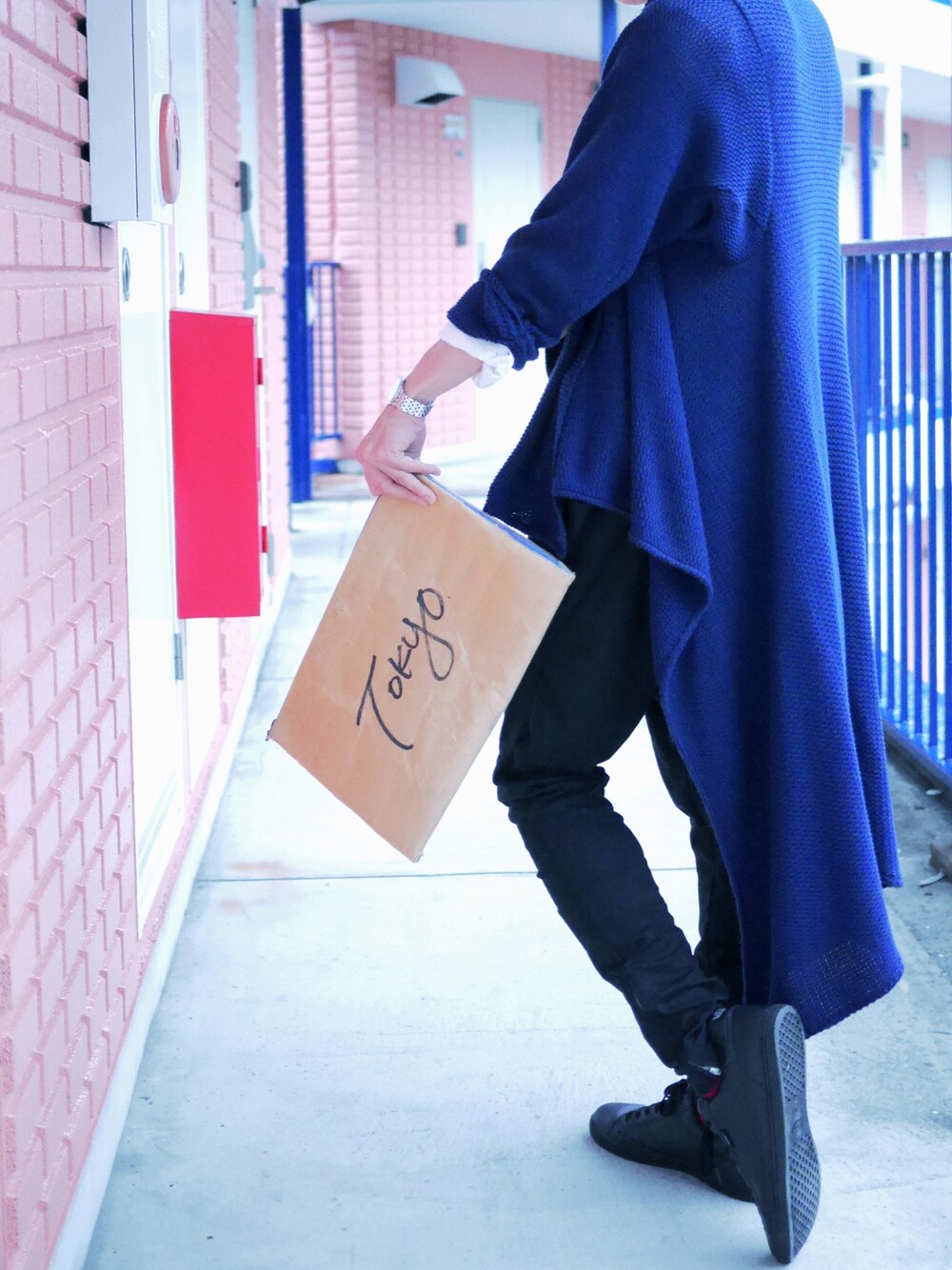 たろーさんのクラッチバッグ「転写クラッチバッグ (MATATABI)」を使ったコーディネート