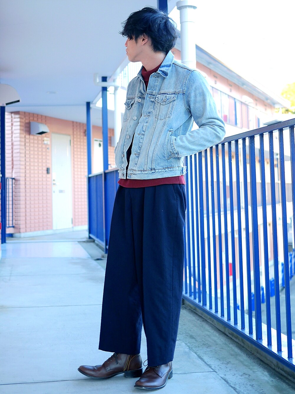 ジージャンの着方を模索 おはようございます。 本当に寒いですね… 昨日は家の近くでも雪がパラパラしてました。 雪が降るほどとは… 今日のコーデは 薄色ジージャン着方考えコーデです。 色が薄いので濃い色と合うのかな?と思って やってみました。 冬の中に春の色がヒョッコリな感じになりました。 意外と合うもんですね。 ウールのワイドパンツと濃い赤のニットの上から 薄い色のジージャンを羽織る。 冬のアウターを春のアウターに変えただけな 季節移行コーデっぽい感じですかね? まだ寒いですけどね( ′◡‵ ) 前にこのアウターを着た時は、 同じ様な色のデニムワイドパンツと合わせたので 次は細めのパンツとの合わせもしたいです( ′◡‵ ) もう少し暖かくなってからかな… それでは今日はこの辺で〜 また次回( ′◡‵ )ノシ