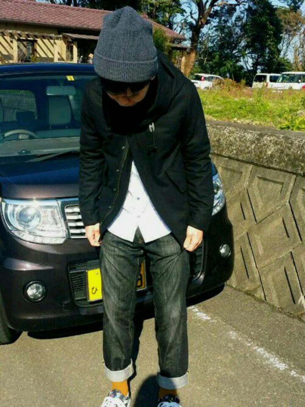初めて投稿(汗) モノトーンにからし色の靴下を 差し色にしてます。 あまり見えてないですが スニーカーがお気に入りです。 モッズコートも 着まわしがきくブラックで かたちも気に入ってます。 上だけ止めて、トップス見せが けっこう好きです。 昔買ったコートなので ドラフト応募可能か 分からないですが、 一応タグはつけてます(汗)