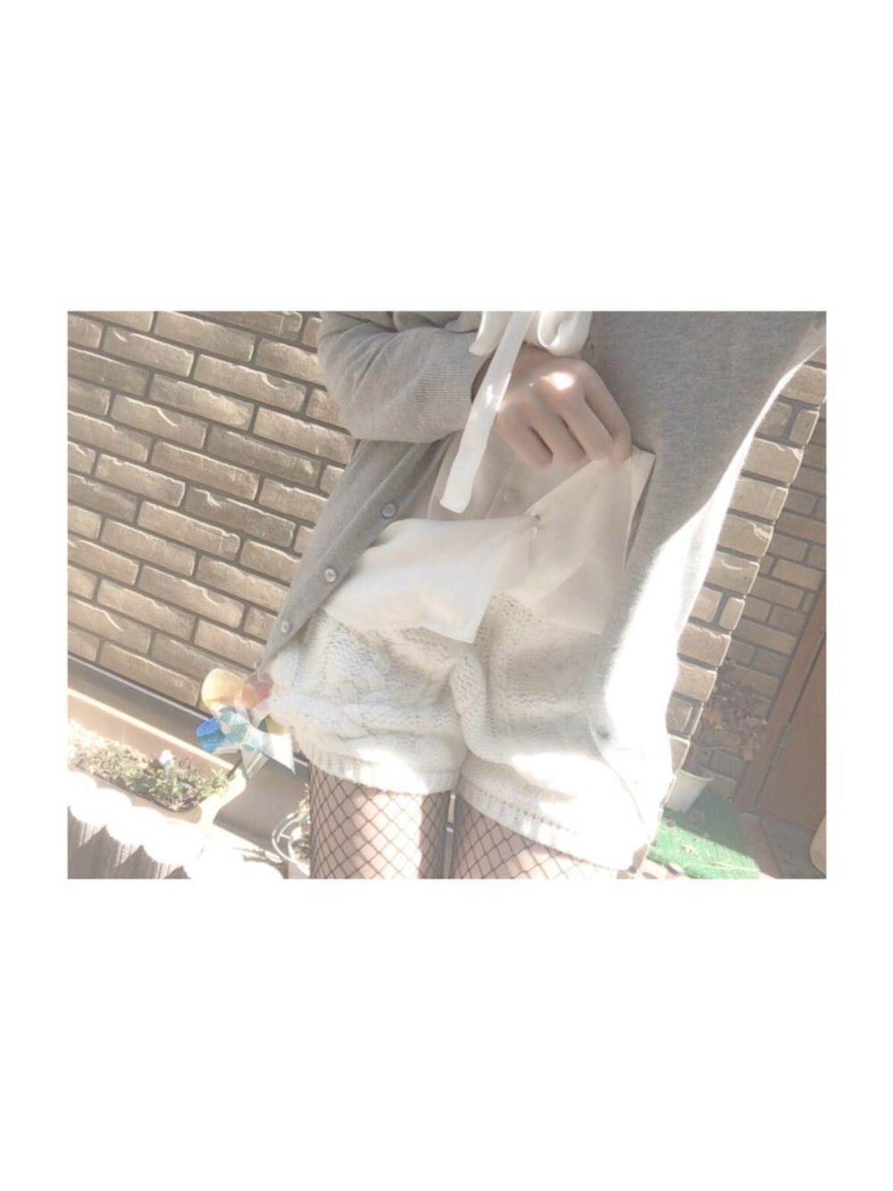 古着っぽいコーデ! (古着は一つもありません) 上下ホワイトで 更に羽織っているカーディガンもグレーのあえてぱっとしないような色合いにしました ☺︎ GUを見て回っているとき 発見したブラウスは本当にお気に入りです! 丸ボタンがとてもかわいいくて 襟は無く、リボンを結んで閉まるタイプです。 パンツはダズリンのニットパンツ!! おむつみたいでかわいい 🍼 おすすめです ☺︎