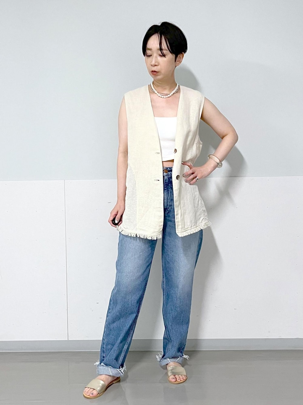 パンツ1-2枚目:24 パンツ3枚目:23 RED CARD BLUES loose tapered ¥24,200(税込) トレンドのクロップド丈トップスとも相性抜群で 今年らしいスタイリングにハマるお勧めデニム! ネックレスもバリエーション増えたので 是非着けてみて下さいね♡