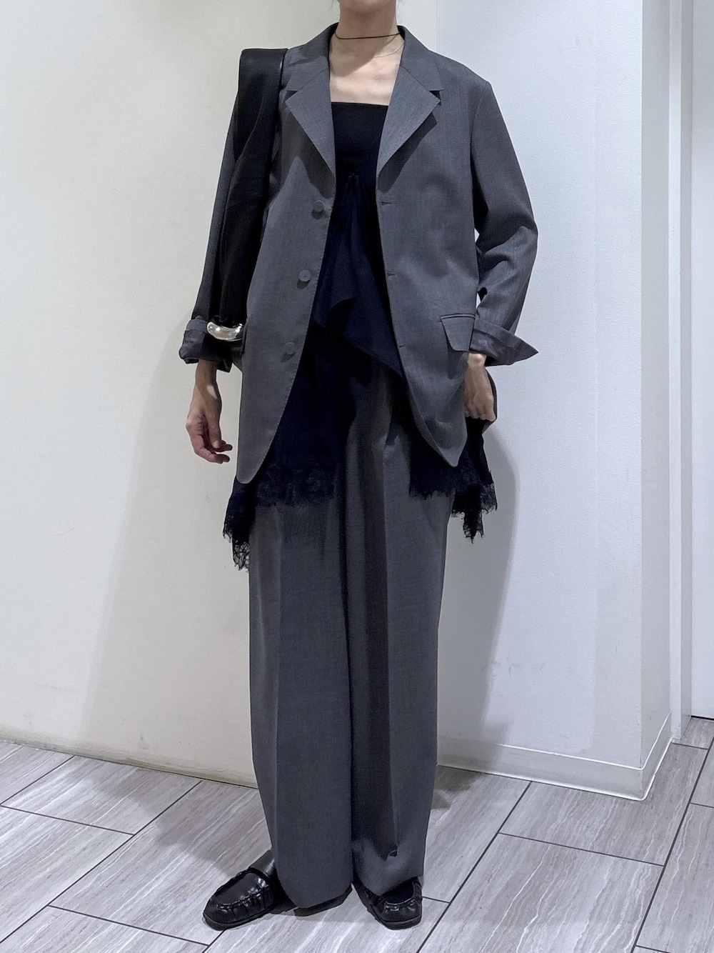 こんにちは! ご覧頂きありがとうございます☺︎ アダムエロぺ福岡パルコ店の大村です♪ 本日は、シングルブレストジャケットのセットアップスタイルをご紹介します。 軽くて着やすくシワにもなりにくいので、気軽に羽織れるジャケットです◎ きちんと感のあるジャケット×スラックスはこれからの卒業式や入学式などセレモニーシーンにもおすすめです◎