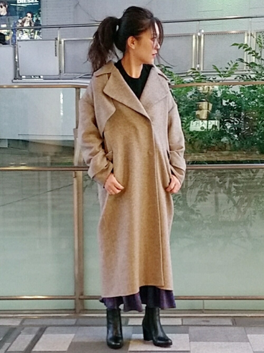 オーバーサイズの ウールトレンチコートです。 今年の気分にはまるビッグシルエット 雰囲気のある魅力的な表面感 表裏で柄の違うこだわりの二重織り 裏側の千鳥格子がとっても可愛いので 脱いだときや袖を折ったときなどが 絶妙に可愛いです。 気分の上がる1着!