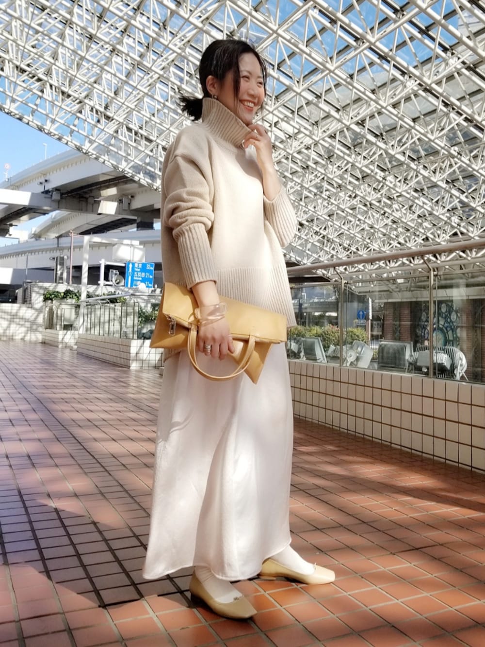 朝晩は冷えますが、 昼間はあたたかい日も増えてきましたね! 冬のあったかニットも、 ホワイト系のボトムにするだけで春コーデに! 今から春まで活躍してくれるアイテムです☆