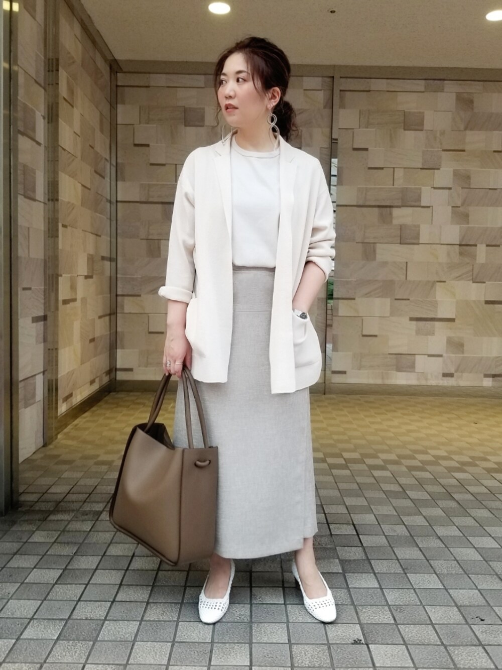 リネン混のニットジャケットをワントーンでまとめました。 リモート会議などの際には、カーディガン感覚で羽織れるジャケットだと、Tシャツやノースリーブトップスにさっと羽織れるので、とても便利です◎
