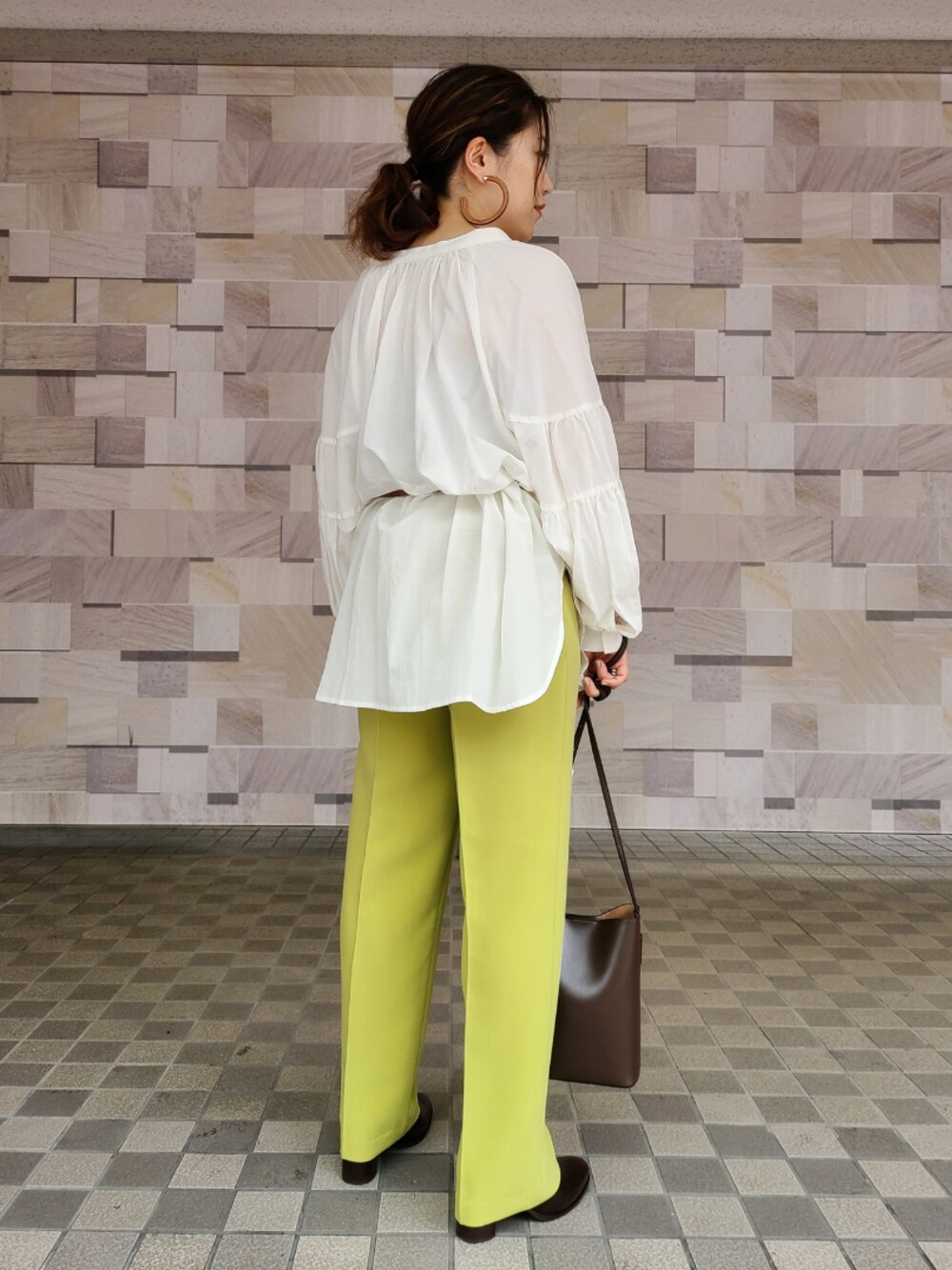 もうすぐ9月ですね。 少しずつ、秋の準備を整えたい時期になってきました。 袖のふんわりとしたボリューム感が魅力のブラウスです。 とても軽いので、今はちょっとした羽織りにも良さそうです。 スカートとの合わせはもちろん、今季気になるカラーパンツとも相性◎です。 プロフィールから、STAFF OUTFITにとべるので そちらもぜひご覧くださいね♪