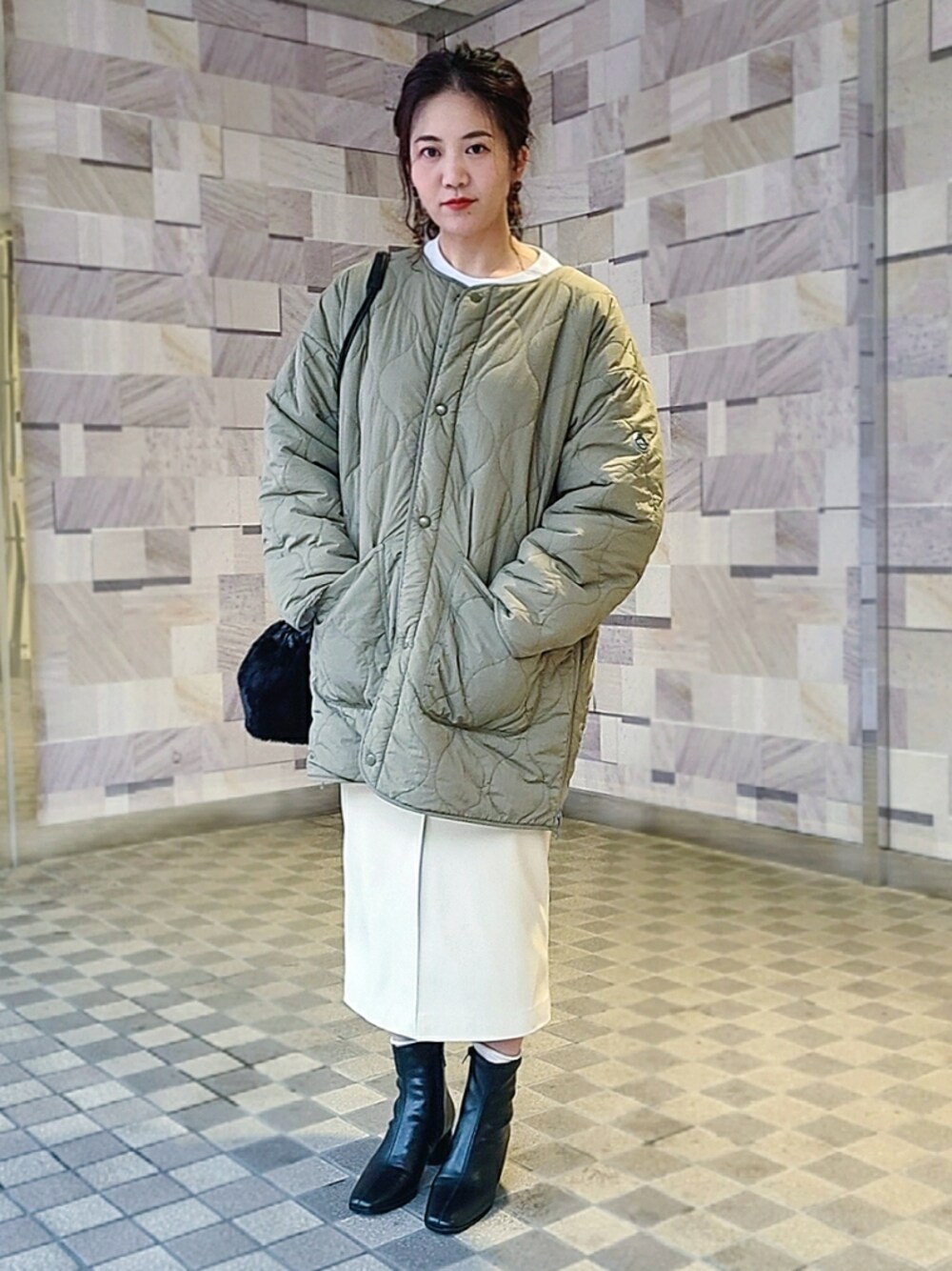 【GERRY】との別注リバーシブルボアコートです♪ (ボアを内側にして着てみました) ボアが小粒なので立体感が抑えられて モコモコしすぎないのが魅力です◎