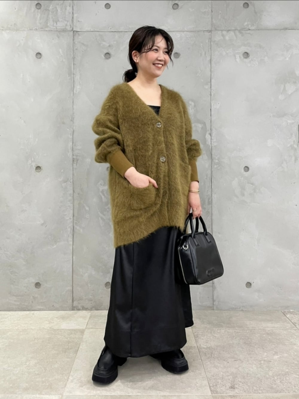 ふわふわニットとレザースカートの 秋らしいコーディネートです。 毛足の長いニットは、 異素材のボトムと合わせると メリハリが出るのでおすすめです。 今週から涼しくなるみたいで いよいよ秋本番到来ですね! ニットやアウターも やっと着られそうで嬉しい♡