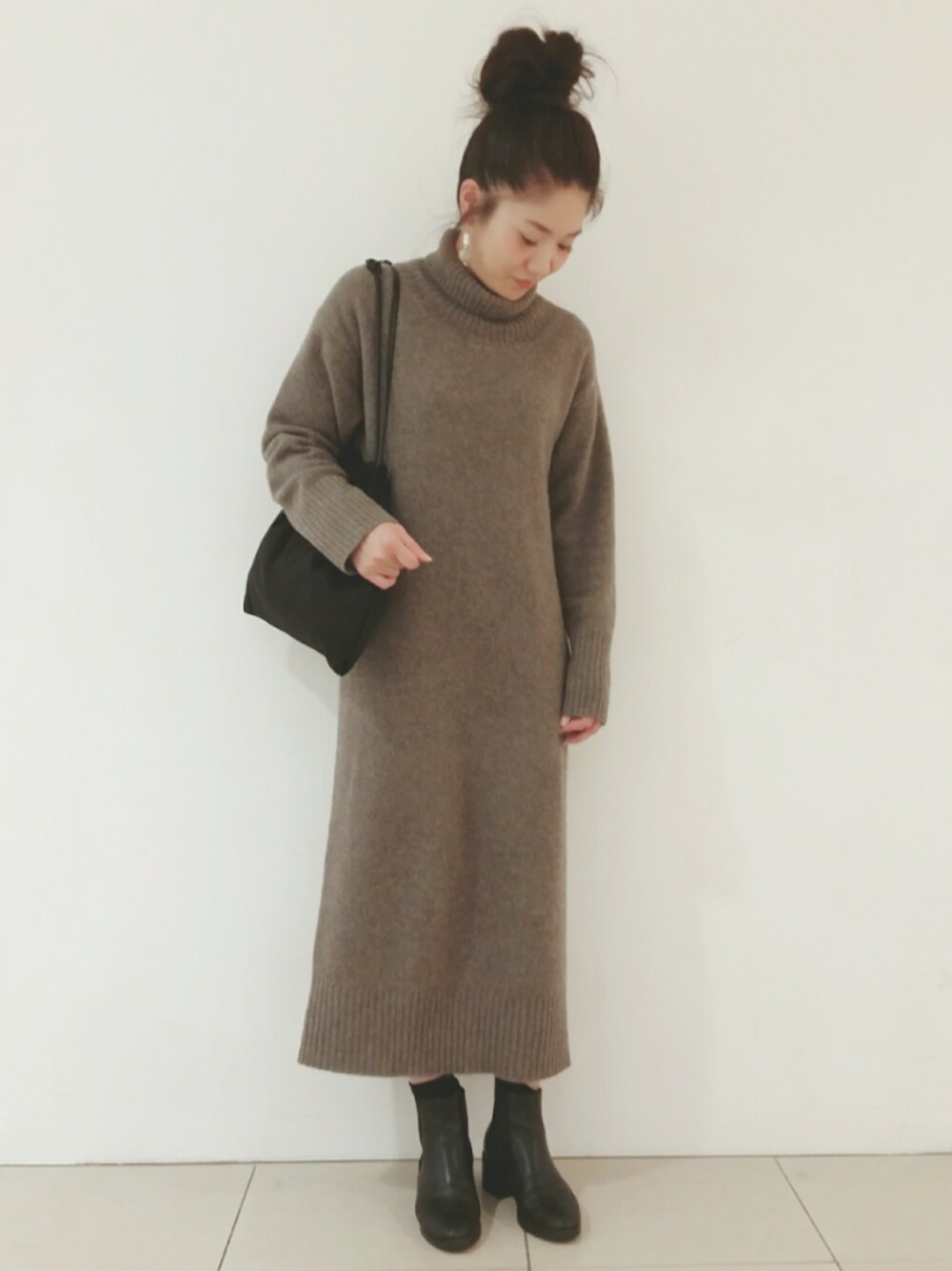 ショートブーツとのバランスがバッチリの ニットロングワンピース ストンと落ちるのですっきりしたシルエットです 去年も大人気だった、 やわらかくて肌触りのよい ヤクという素材を使っているのですが 本当にチクチクしないので キャミやタンクトップでも大丈夫!! ウール素材だとモノによって チクチクしてしまう私には 本当にありがたい素材です。 毛玉にもなりにくいので 気兼ねなくリュックなども背負えますよ☆
