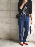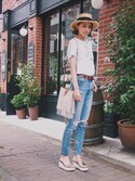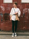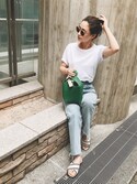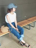 👕👖白トップス+デニム+小物使いが素敵✨参考コーデ