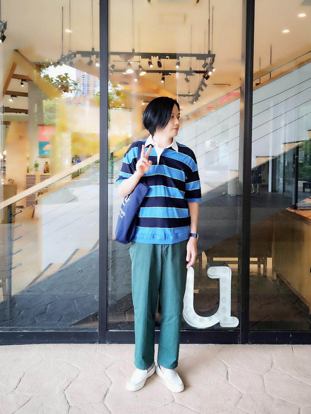 すれ違う人達の服装も気温も夏なのに 蝉の鳴き声がパッタリなくなった 「スポーツウェア」じゃなく 「運動着」とか「体操服」みたいな いなたい感じで ラガーシャツとグリーンのパンツ (最高気温29℃ / 晴れ)