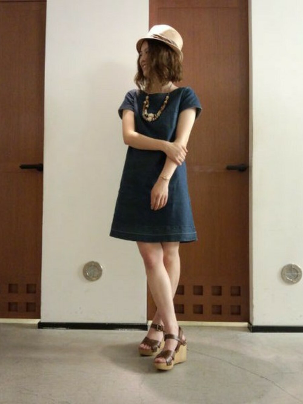mana*のワンピース「コンパクトショートスリーブデニムフレンチワンピース」を使ったコーディネート