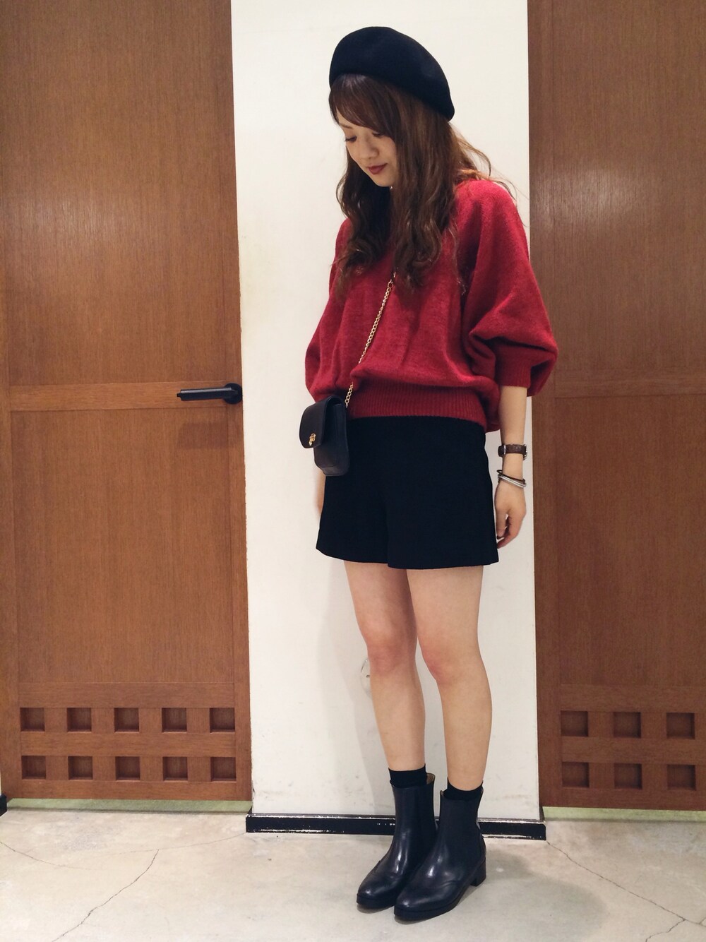 mana*のハンチング/ベレー帽「ウールベレー帽」を使ったコーディネート