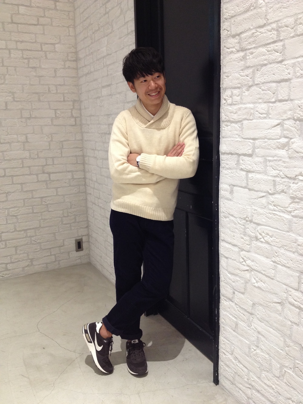 コーデュロイパンツ、ヘチマカラーニットはシンプルな大人スタイルに最適です! アクセントにDaniel Welingtnの時計を!