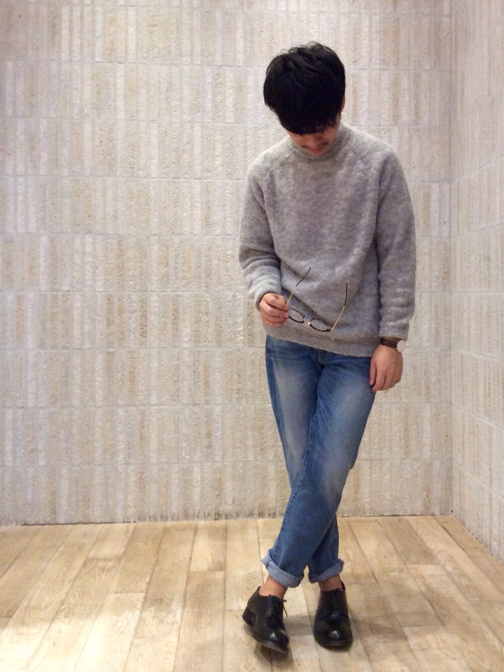 ベビーアルパカを使用したニットは柔らかく暖かく、気持ちが良いです! デニム、革靴で合わせるのが今季の気分ですね!