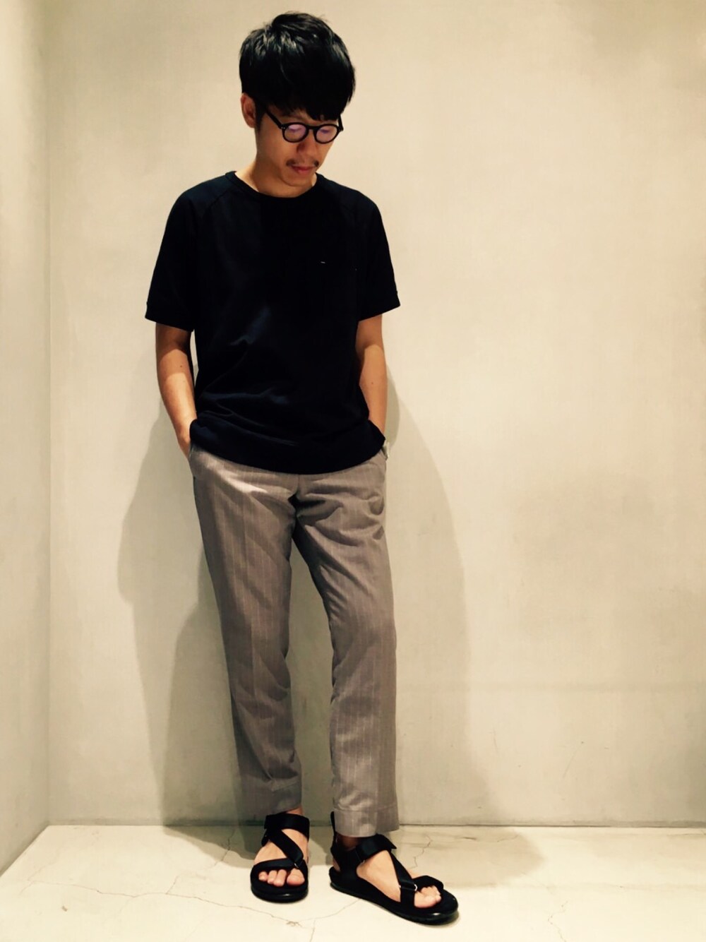 AMAKAWAのその他パンツ「センタープレス ストライプテーパードパンツ」を使ったコーディネート