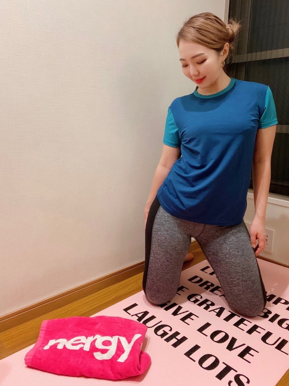 今日は、春らしい配色が目をひくバックスラッシュTシャツを着ておうちトレーニング! 背中にさりげなく肌見せを施したデザイン&通気性がよくさらりとした着心地がオススメポイントです! ジムやランニングなどワークアウトにも最適!