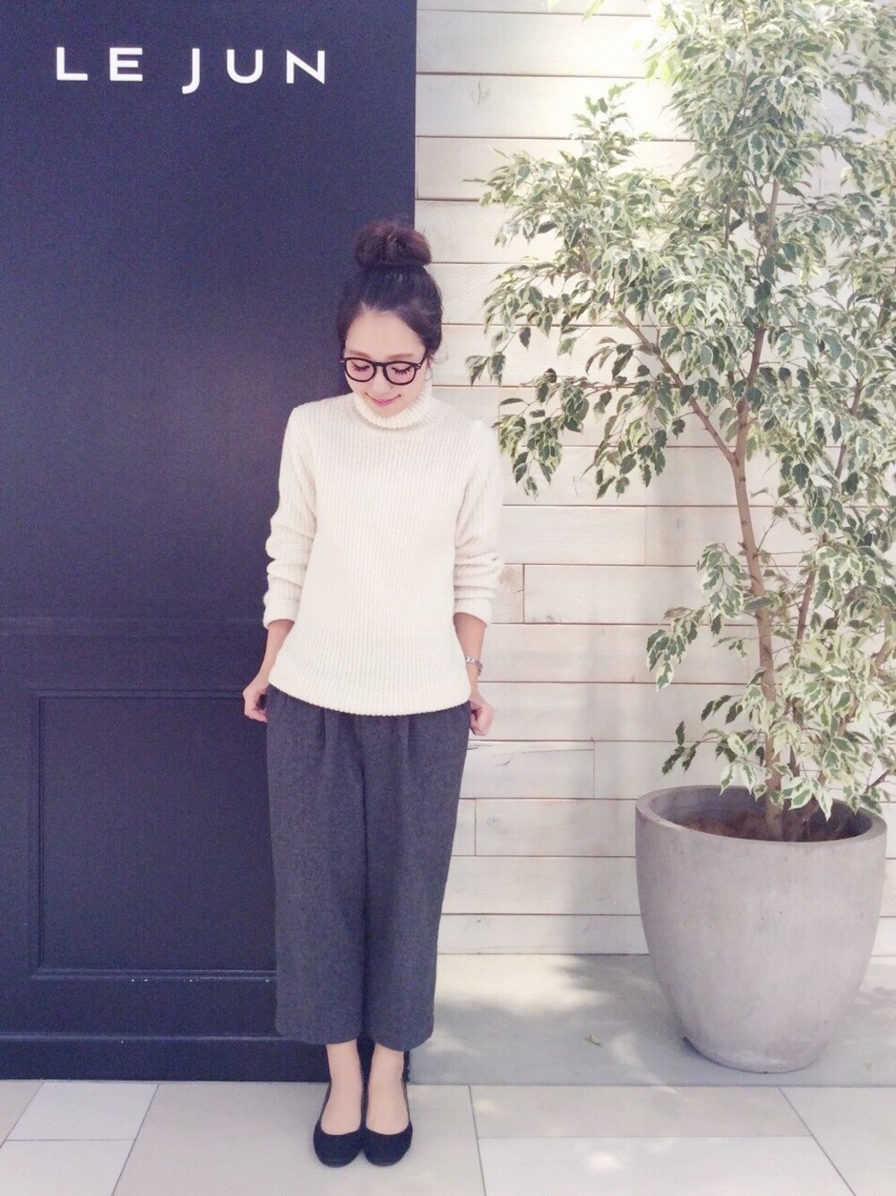 やさしい手触りのアルパカ混の素材感。しっかりとした厚みを保ちつつもやわらかく軽さが魅力的! アップヘアースタイルですっきりと♪